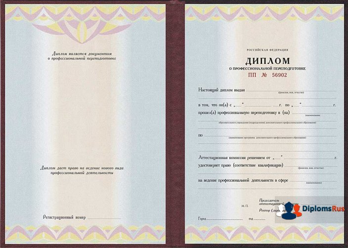 Купить диплом о переподготовке подобный шаг может быть продиктован необходимостью получения новой профессии. Такой документ при условии прохождения аттестации дает полное право занимать место по полученной специальности, то есть ранее полученная профессия и новая становятся равноправными. Таким образом, приобретенный диплом о переподготовке позволяет сменить сферу деятельности, если старая специальность утратила свою актуальность или же не приносит желаемого удовлетворения в профессиональном либо в материальном плане.